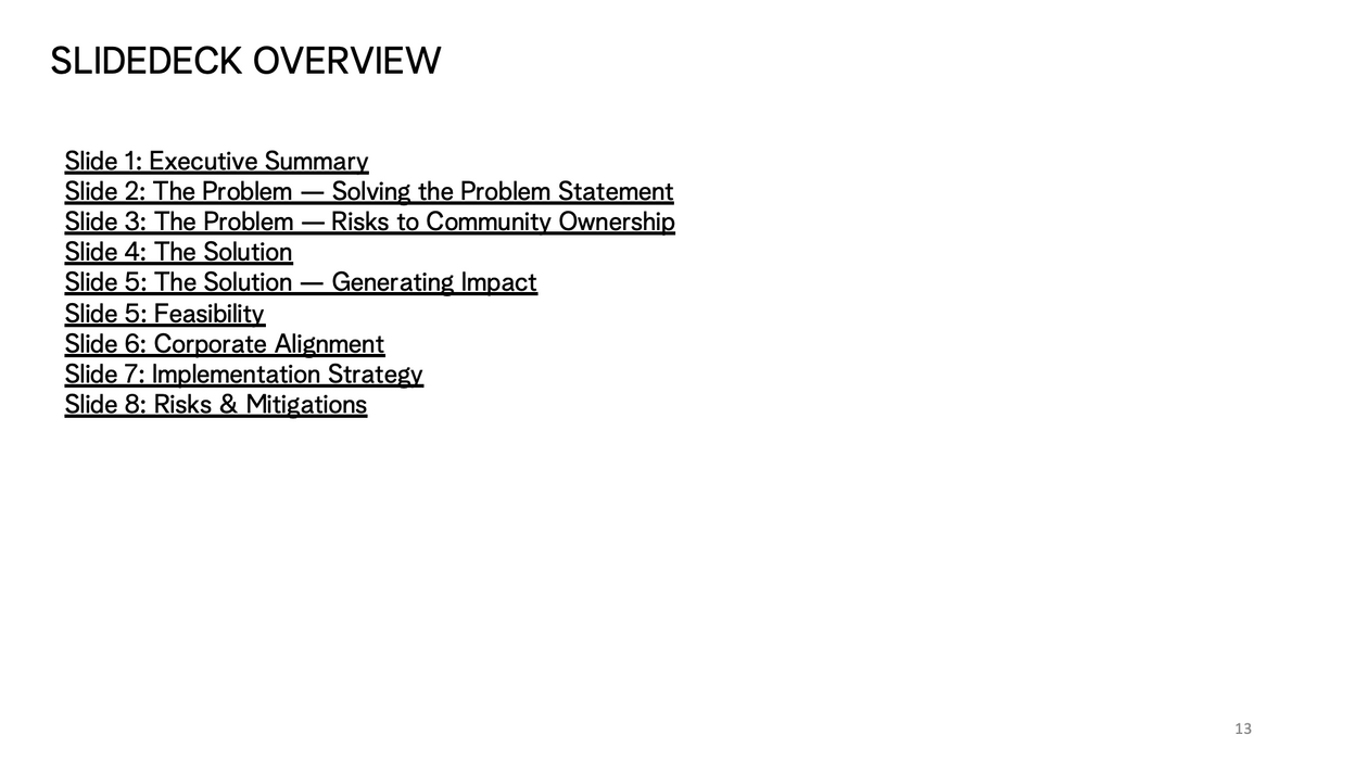 We struggled to develop succinct and convincing answers to these questions through the lens of a Community Ownership Model, thus, we decided it was not the correct structure for Kotn. Instead, we suggested the implementation of a Corporate Foundation Model. Throughout the presentation to the judges, we discussed our solution, the impact, financial feasibility, brand alignment, a five-year implementation timeline, and possible risks and mitigation.